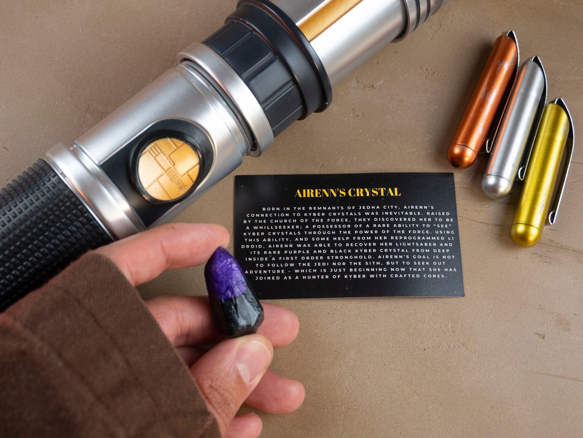 Fully compatible with Galaxy’s Edge Savi’s Workshop lightsabers and Disney Holocrons.