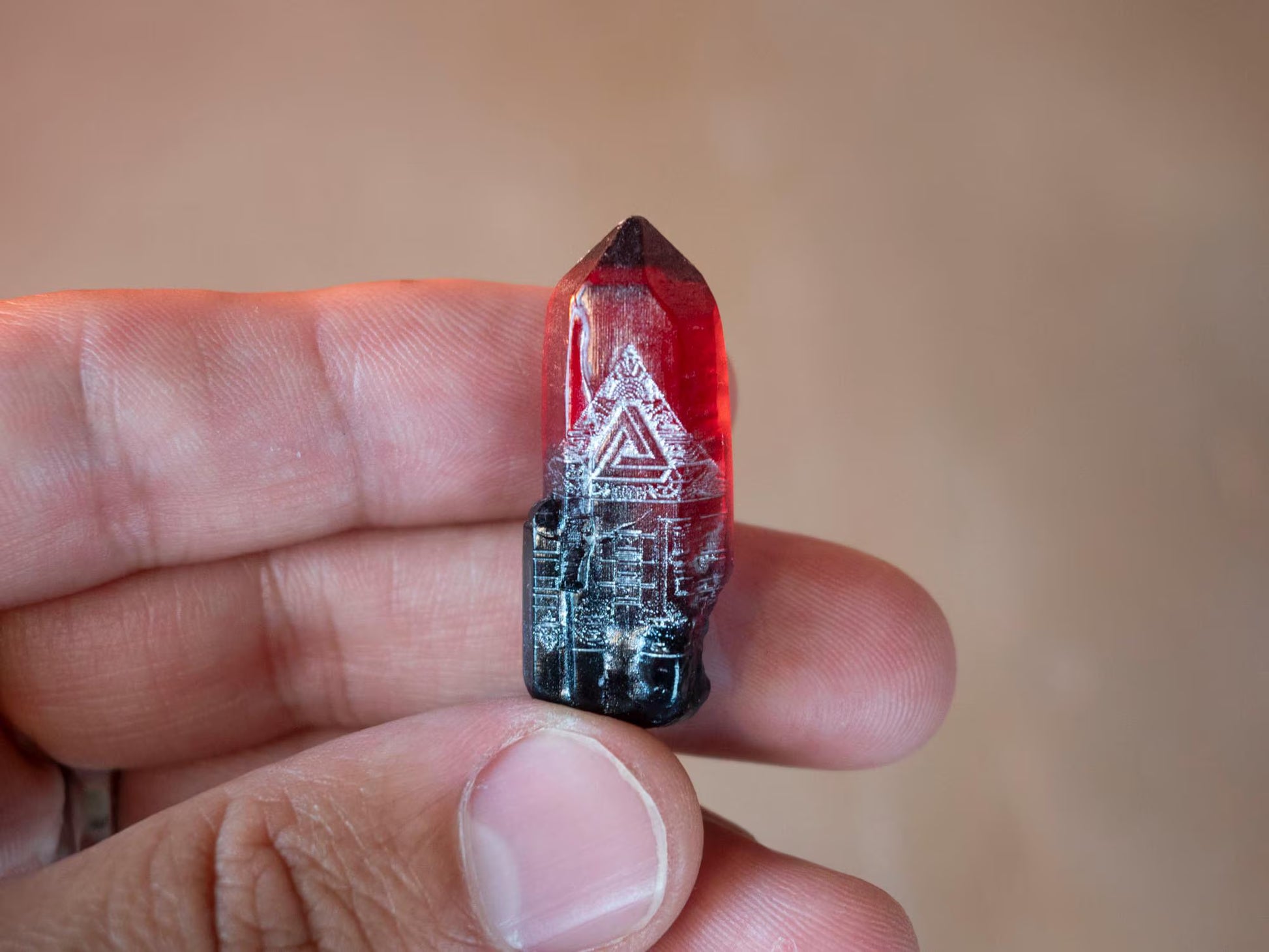 The Bane’s Edict kyber crystal is a custom-crafted red and black resin prop inspired by Darth Bane, founder of the Rule of Two. It activates Snoke and Bane voice lines when inserted into compatible Disney holocrons and fits all Galaxy’s Edge Savi’s Workshop sabers.