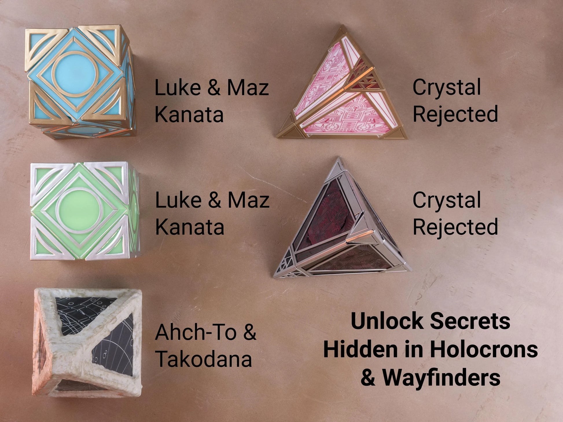 Fully compatible with Galaxy’s Edge Savi’s Workshop lightsabers and Disney Holocrons.