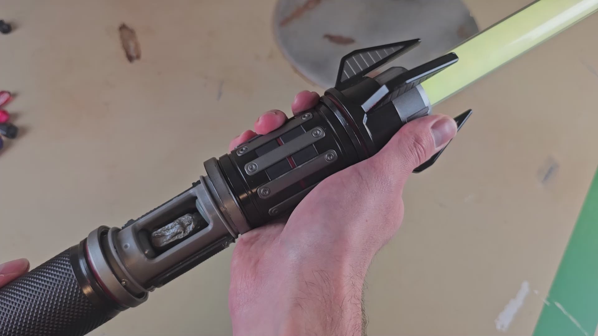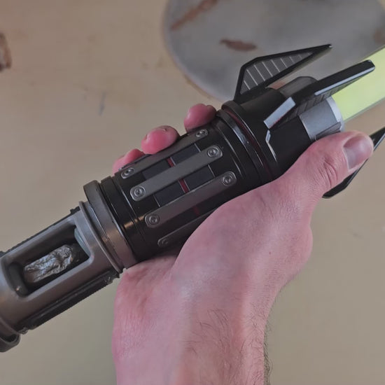 Inspired by the iconic image of a smuggler frozen in carbonite, this custom kyber crystal captures the tension between action and preservation. Forged in epoxy resin and infused with subtle texturing that evokes the cold surface of carbonite, this Savi’s-compatible crystal features dual blade colors—blue and yellow—activated depending on which end is inserted into the saber. With voices from both Luke Skywalker and Maz Kanata, it’s a perfect fusion of legacy, loyalty, and unexpected wisdom. A unique addition for saber collectors who walk the line between rebellion and reflection.